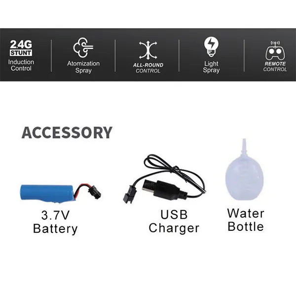 سایر ویژگی ها | شارژی، 5 کانال، دارای نور پردازی زیبا، قابلیت فعال سازی حالت دودزا با فشردن دکمه میانی روی ریموت کنترل، پخش شدن صدای موتور با روشن شدن ماشین و تغییر صدا و موزیک با نگه داشتن دکمه روی کنترل، قابلیت چرخش به دور خود، دارای حالت دمو |