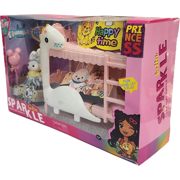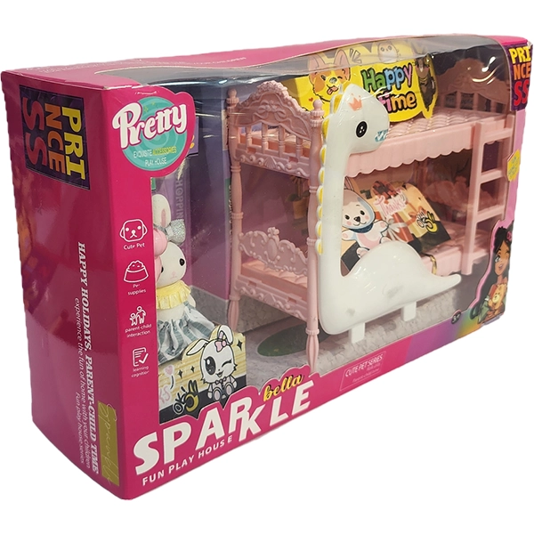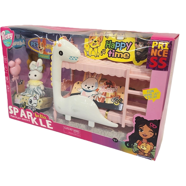 مجموعه خرگوش فانتزی sparkle با عروسک خرسی، تخت و پله